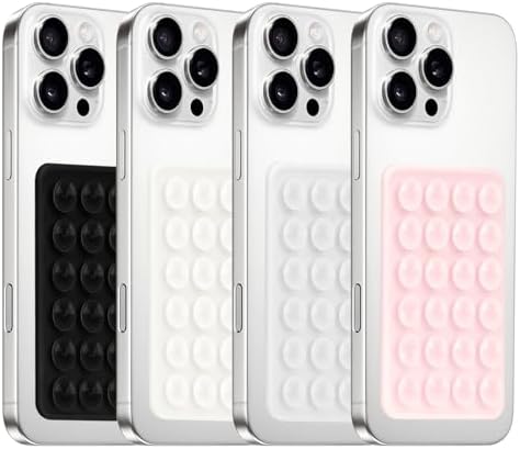 4Pack Silicone Suction Phone Case Mount, Silicon Adhesive Smartphones Stand Sticky, Hands-Free Phone Accessories Holder for Selfies and Videos (Black & White & Translucent & Light Pink)