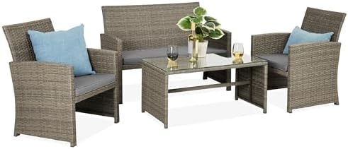 Best Choice Products 4-Piece Outdoor Wicker Patio Conversation Furniture Set for Backyard w/Coffee Table, Seat Cushions – Taupe/Cement Gray