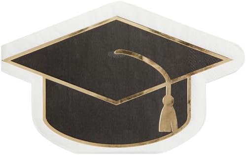 C.R. Gibson Lunch Napkin, Graduation Cap – Die-Cut, Gold Foil Accents – 3-Ply, 20 Count (TW7-25538)