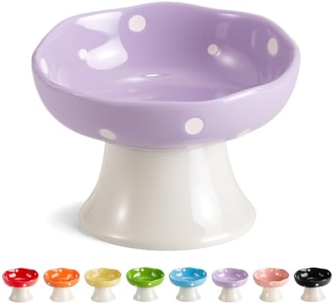 Ceramic Elevated Cat Bowls, Tilted Raised Pet Dish for Indoor Cats, Whisker Friendly Pet Food and Water Bowl for Kitten, Cat, Puppies, Dishwasher Safe (Purple)
