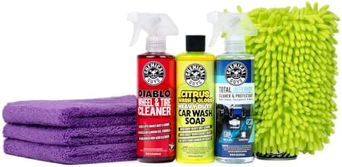 Chemical Guys Clean and Shine Car Wash Starter Kit – 7-Piece Set with 3 x 16 oz Car Detailing Chemicals, Safe for Cars, Trucks, SUVs, Motorcycles, Jeeps, RVs, and More