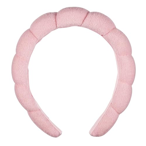 Conair Spa Makeup and Face Washing Headband, Pink Bubble Design, 1 Count, Ultra-Absorbent Microfiber Headband for Washing Face, Soft Terry Cloth, No-Squeeze, No-Pull Band Gentle on Hair and Head