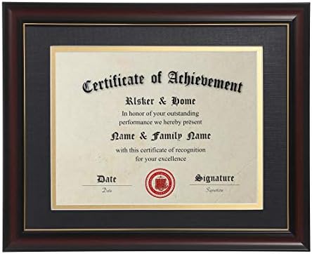 ELSKER&HOME 8.5×11 Diploma Frames with Mat, Classic Cherry Wood, 8.5×11 or 11×14 Inch – Double Matte Black with Gold Rim