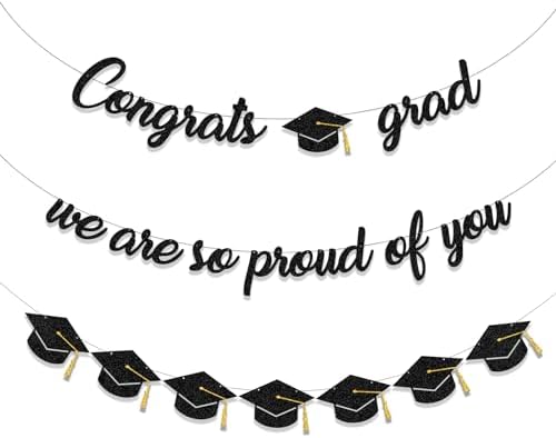 • Package includes: 1pcs Congrats Grads Banner, 1pcs We are So Proud of You Banner, 1pcs Graduation caps Banner