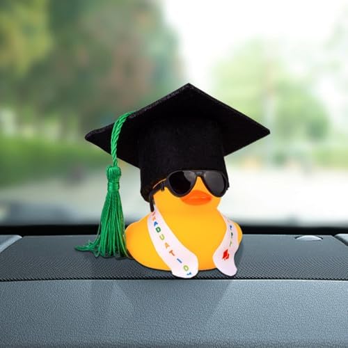 Graduation Duck Dashboard Decoration, Plastic Duck Car Ornament with Mini Graduation Hat Sash Glasses, Funny Car Decoration Accessories, Auto Dashboard Duck for Most Cars (Sunglasses-Green)