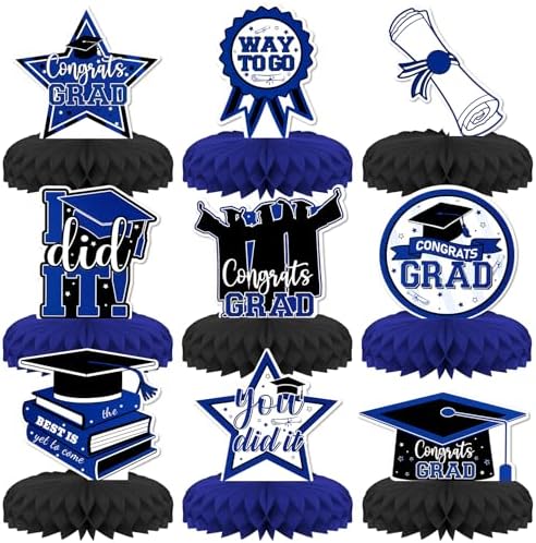 Graduation Theme Party Decorations,9 PCS KSKSPE Graduation Centerpieces for Tables Honeycomb Centerpieces 3D Party Decor Supplies Boys Girls