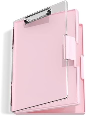 The Hongri Clipboard with Storage is a versatile and durable option for teachers, nurses, students, artists, and office workers. This pink folder features a side opening for easy access to documents and is designed with heavy-duty materials for long-lasting use. The dual compartment design allows for organized storage of different files, with a low-profile clip to keep them secure.