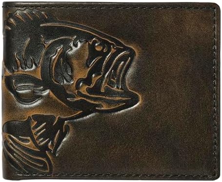 House of Jack Co. Bass Wallet for Men, Double ID Bifold, Full Grain Leather Fishing Wallet, Ideal Gift for Men, Black