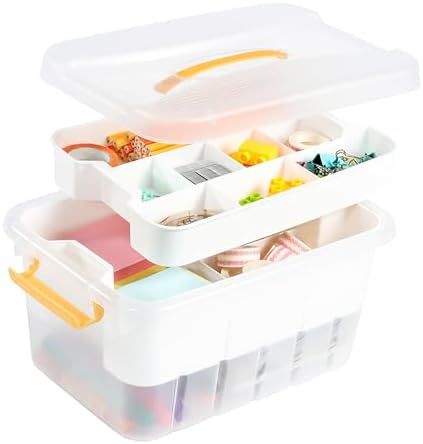 ihomecooker 13 QT Plastic Storage Box with Removable Tray Craft Organizers and Storage Clear Storage Container with lid for Arts & Crafts, Playdoh, Beads, Crayons