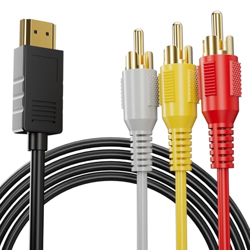 PANPEO HDMI to RCA Converter Cable (with Chip) – 1080P HD HDMI to Composite Video + Audio Output 5ft (1.5m) – for Older TVs/Projectors/DVD Players/PCs/Laptops