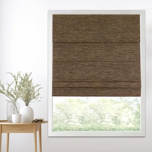Persilux Cordless Blackout Roman Shades for Windows,Natural Woven Linen Fabric Roman Shades,Thermal Insulated Roman Blinds,UV Protection for Bedroom, Living Room, Office,Brown,Customize Size