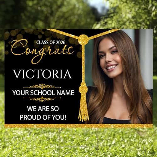 Personalized Graduation Yard Sign for Class of 2026 – Custom Outdoor Sign with Photo or Name – Perfect Congrats Sign for High School or College Seniors (Design 14) – Make your Graduation Memorable! Customize your graduation celebration with our Personalized Graduation Yard Sign 2026! This custom outdoor sign features your choice of photo or name, making it a perfect way to celebrate the Class of 2026. Whether you’re a high school or college senior, this Congrats Sign is a great way to show off your achievements. Design 14 is sure to stand out and make a statement at your graduation party. Celebrate in style and order yours today! Celebrate the Class of 2026 with our personalized graduation yard sign! Customize with a photo or name for a special touch. Perfect for high school or college seniors. Congrats on your achievement! (Design 14)