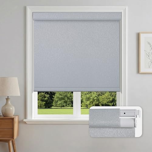 SEEUNANA No Drill Blinds for Indoor Windows,Blackout Roller Shades,Cordless Blinds,Thermal Insulated,UV Protection,Easy Install with No Tools,Window Shades for Home and Office,Gray,Custom Size
