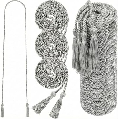 TFTAFAN 60 pcs Graduation Honor Cords Bulk 68″ Grad Braided Honor Cord with Tassel for Commencement, Academic Achievements, School Ceremonies and Student Organizations (Sliver)