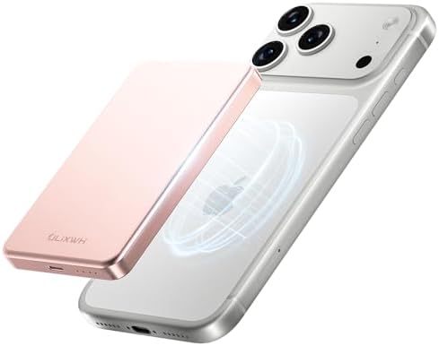 ULiXWH 10,000mAh for MagSafe Power Bank Ultra Slim, Magnetic Wireless Charger with USB-C Cable, Fast Charging Portable Battery for iPhone 17 Pro Max/17 Pro/Air/16/15/14/13, Rose Gold