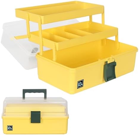 WEWLINE 13-Inch Art Box Sewing Storage Organizer 3-Layers Craft Storage Organizer with Handle Plastic Storage Boxes Organizers for Kids Student Artist,Yellow